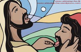 Depois Jesus toca-lhe a língua com a sua saliva. Na cultura judaica na época, a