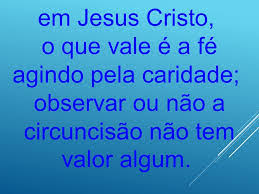 “Quanto a nós, que nos deixamos conduzir pelo Espírito, é da fé que aguardamos a justificação, objeto de nossa esperança. Com efeito, em Jesus Cristo, o que vale é a fé agindo pela caridade; observar ou não a circuncisão não tem valor algum”.